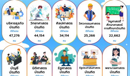 นักศึกษาข่าวเด่นข่าวเด่น! 10 หลักสูตรที่มีนักศึกษาไทยจบการศึกษามากที่สุด !! ระดับปริญญาตรี 2565 EZ Webmaster April 22, 2023 อว.เผยข้อมูลจำนวนผู้สำเร็จการศึกษา ปี 2565 รวมทั้งสิ้น 292,935 คน หลักสูตรระดับปริญญาตรี “บริหารธุรกิจ” ครองแชมป์ มีผู้จบกว่า 47,000 คน โดยหลักสูตร “วิทยาศาสตร์” ตามมาติด ๆ…
