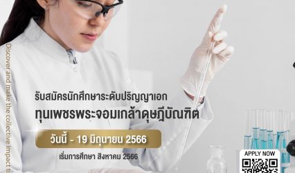 ทุนดีดี มจธ. เปิดรับสมัครนักศึกษา ระดับปริญญาเอก โครงการทุนการศึกษาเพชรพระจอมเกล้าดุษฎีบัณฑิต ภาคการศึกษาที่ 1/2566 (เริ่มการศึกษา สิงหาคม 2566) EZ Webmaster April 7, 2023 รับสมัครนักศึกษา ระดับปริญญาเอก โครงการทุนการศึกษาเพชรพระจอมเกล้าดุษฎีบัณฑิต ภาคการศึกษาที่ 1/2566 (เริ่มการศึกษา สิงหาคม 2566) สมัครตั้งแต่ วันนี้ – 19 มิถุนายน 2566 สมัครผ่านเว็บไซต์ https://admission.kmutt.ac.th หรือ http://petchra.kmutt.ac.th…