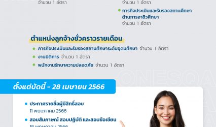 กิจกรรม สมศ. เปิดรับสมัครเจ้าหน้าที่และลูกจ้างหลายอัตรา ยื่นใบสมัครตั้งแต่วันนี้ – 28 เมษายน 2566 EZ Webmaster April 7, 2023 สำนักงานรับรองมาตรฐานและประเมินคุณภาพการศึกษา (สมศ.) เปิดรับสมัครเจ้าหน้าที่และลูกจ้างจำนวนหลายอัตรา ดังนี้ เจ้าหน้าที่ งานทรัพยากรมนุษย์ จำนวน 1 อัตรา ลูกจ้างรายปี ภารกิจพัฒนาระบบประเมิน จำนวน 1 อัตรา ลูกจ้างรายปี ภารกิจประเมินและรับรองสถานศึกษาด้านการอาชีวศึกษา…
