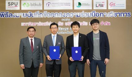 นักศึกษา ม.ศรีปทุม จับมือ บริษัท บิทคับ แล็บส์ จำกัด MOU มุ่งพัฒนาศักยภาพนักศึกษา มุ่งการเรียนรู้เทคโนโลยีบล็อกเชนและสินทรัพย์ดิจิทัล EZ Webmaster April 4, 2023 มหาวิทยาลัยศรีปทุม โดย คณะเทคโนโลยีสารสนเทศ ผนึกกำลัง คณะบัญชี คณะนิติศาสตร์ และสำนักวิชาศึกษาทั่วไป ร่วมกับ บริษัท บิทคับ แล็บส์ จำกัด หรือที่รู้จักกันในนาม บิทคับ อะคาเดมี ศูนย์การเรียนรู้สินทรัพย์ดิจิทัลและเทคโนโลยีบล็อกเชนที่เปิดโอกาสให้ทุกคนได้เข้ามาเรียนรู้ร่วมสร้างคอมมูนิตี้และสร้างประสบการณ์เกี่ยวกับสินทรัพย์ดิจิทัลและเทคโนโลยีบล็อกเชนอย่างมีคุณภาพและยั่งยืน จัดพิธีลงนามบันทึกความร่วมทางวิชาการ (MOU)…