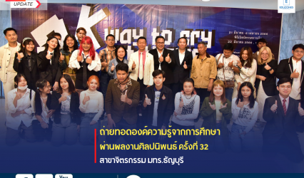 Blogนักศึกษา ถ่ายทอดองค์ความรู้จากการศึกษา ผ่านผลงานศิลปนิพนธ์ครั้งที่ 32 สาขาจิตรกรรม มทร.ธัญบุรี tui sakrapee April 3, 2023 ณ หอศิลปวัฒนธรรมแห่งกรุงเทพมหานคร (BACC) เขตปทุมวัน กรุงเทพมหานคร รองศาสตราจารย์ ดร.สมหมาย ผิวสอาด อธิการบดีมหาวิทยาลัยเทคโนโลยีราชมงคลธัญบุรี (มทร.ธัญบุรี) มอบหมายให้ ผู้ช่วยศาสตราจารย์ ดร.เมธา ศิริกูล รองอธิการบดี มทร.ธัญบุรี…