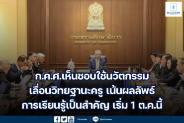 ก.ค.ศ.เห็นชอบใช้นวัตกรรมเลื่อนวิทยฐานะครู มุ่งเน้นผลลัพธ์การเรียนรู้เป็นสำคัญ เริ่ม 1 ต.ค.นี้ EZ Webmaster April 2, 2024 เมื่อวันที่ 27 มีนาคม 2567 ที่ประชุมคณะกรรมการข้าราชการครูและบุคลากรทางการศึกษา (ก.ค.ศ.) ครั้งที่ 3/2567 โดยมี พล.ต.อ.เพิ่มพูน ชิดชอบ รัฐมนตรีว่าการกระทรวงศึกษาธิการ (รมว.ศธ) เป็นประธานการประชุม และมีรศ.ดร.ประวิต เอราวรรณ์ เลขาธิการ ก.ค.ศ. เป็นเลขานุการการประชุม ได้มีมติเห็นชอบ (ร่าง) หลักเกณฑ์และวิธีการให้ข้าราชการครูและบุคลากรทางการศึกษา ตำแหน่งครูผู้มีผลงานการสร้างและพัฒนานวัตกรรม เลื่อนเป็นวิทยฐานะครูชำนาญการพิเศษ วิทยฐานะครูเชี่ยวชาญและวิทยฐานะเชี่ยวชาญพิเศษ โดยกำหนดเพิ่มเติมเป็นหมวด 7 และหมวด8 ในหลักเกณฑ์และวิธีการประเมินตำแหน่งและวิทยฐานะข้าราชการครูและบุคลากรทางการศึกษา ตำแหน่งครู (ว9/2564) ในการประเมินตำแหน่งและวิทยฐานะข้าราชการครูและบุคลากรทางการศึกษา ตำแหน่งครูผู้ที่มีผลงานการสร้างและพัฒนานวัตกรรมตาม (ร่าง) หลักเกณฑ์และวิธีการนี้จะใช้รูปแบบการประเมินภายใต้แพลตฟอร์มระบบ DPA เพื่อให้กระบวนการประเมินเป็นมาตรฐานเดียวกัน ซึ่งการประเมินนี้เป็นการประเมินที่ออกแบบมาเพื่อส่งเสริมและสนับสนุนข้าราชการครูและบุคลากรทางการศึกษา ตำแหน่งครู ได้มีการสร้างและพัฒนานวัตกรรมเพื่อใช้ในการจัดการเรียนรู้ โดยมุ่งเน้นไปที่ผลสัมฤทธิ์และผลการเรียนรู้ของผู้เรียน ให้เกิดประโยชน์ในการสร้างคุณค่าในการพัฒนาการศึกษา ชุมชน… Continue Reading