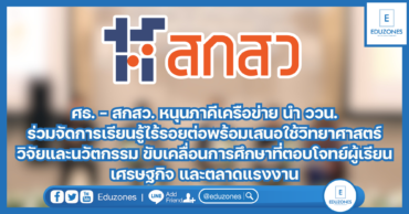 EZ Webmaster March 28, 2024 ศธ. – สกสว. หนุนภาคีเครือข่าย นำ ววน. ร่วมจัดการเรียนรู้ไร้รอยต่อพร้อมเสนอใช้วิทยาศาสตร์ วิจัยและนวัตกรรม ขับเคลื่อนการศึกษาที่ตอบโจทย์ผู้เรียน เศรษฐกิจ และตลาดแรงงาน EZ Webmaster March 28, 2024 สำนักงานคณะกรรมการส่งเสริมวิทยาศาสตร์ วิจัยและนวัตกรรม (สกสว.) ร่วมกับภาคีเครือข่าย ร่วมแลกเปลี่ยนข้อคิดเห็น ผ่านเวทีสัมมนาวิชาการ Thailand Education Forum ครั้งที่ 1 ในหัวข้อ “ทอผ้าผืนใหม่ สู่การศึกษาไทยไร้รอยต่อ” เพื่อนำเสนอข้อค้นพบจากการดำเนินงานโครงการจัดการความรู้และขับเคลื่อนระบบการศึกษาและการเรียนรู้ ข้อเสนอแนะเชิงนโยบายแก่กระทรวงศึกษาธิการ และ กรอบการวิจัยเชิงระบบที่มุ่งเน้นการพัฒนาคุณภาพการศึกษาที่มีผู้เรียนเป็นศูนย์กลางการพัฒนา ลดช่องว่างและ “รอยต่อ” ในระบบ อุปสรรคสำคัญของการพัฒนาการศึกษาไทย ของหน่วยบูรณาการประเด็นยุทธศาสตร์เพื่อพัฒนาวิทยาศาสตร์ วิจัยและนวัตกรรม (ววน.) ด้านการศึกษาและเรียนรู้ (Strategic Agenda Team: SAT การศึกษาและการเรียนรู้ ) โดยมี พล.ต.อ.เพิ่มพูน ชิดชอบ… Continue Reading