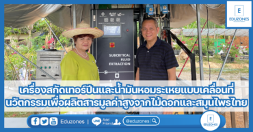 EZ Webmaster March 28, 2024 เครื่องสกัดเทอร์ปีนและน้ำมันหอมระเหยแบบเคลื่อนที่ นวัตกรรมเพื่อผลิตสารมูลค่าสูงจากไม้ดอกและสมุนไพรไทย EZ Webmaster March 28, 2024 น้ำมันหอมระเหยจากไม้ดอกและสมุนไพรบางชนิด เป็นสารสกัดมูลค่าสูงที่กำลังเป็นที่นิยมในตลาดโลก ด้วยคุณสมบัติอันหลากหลายที่สามารถนำไปใช้ประโยชน์ทั้งในด้านสุขภาพ ความงาม และเวชภัณฑ์ ข้อมูลจาก imarcgroup.com พบว่าในปี 2566 ตลาดน้ำมันหอมระเหยทั่วโลกมีมูลค่าสูงถึง 12.2 พันล้านดอลลาร์สหรัฐ และมีแนวโน้มจะเติบโตอย่างต่อเนื่องแตะ 24.5 พันล้านดอลลาร์สหรัฐภายในปี 2575 เช่นเดียวกับตลาดน้ำมันหอมระเหยในประเทศไทยที่ในปี 2565 ตลาดน้ำมันหอมระเหยเติบโตและมีมูลค่ากว่า 3,000 ล้านบาท (ข้อมูลจาก positioningmag.com) ด้วยโอกาสในการแข่งขันในตลาดโลกผนวกกับจุดแข็งของประเทศไทยที่มีทรัพยากรทางธรรมชาติที่อุดมสมบูรณ์ มีความหลากหลายด้านพันธุ์พืชทั้งไม้ดอกและสมุนไพรมากกว่า 20,000 ชนิดถือเป็นแหล่งวัตถุดิบชั้นดีสำหรับการสกัดน้ำมันหอมระเหย ทีมวิจัยจากภาควิชาวิศวกรรมอาหาร คณะวิศวกรรมศาสตร์ มหาวิทยาลัยเทคโนโลยีพระจอมเกล้าธนบุรี ซึ่งประกอบด้วย ผศ. ดร.อาลักษณ์ ทิพยรัตน์ ผศ. ดร.จักรภพ วงศ์วิวัฒน์ ดร.ภัทรินทร์ สุพานิชวาทิน และ นายธนบดี… Continue Reading