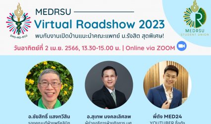 นักเรียน สโมสรนศ.แพทย์ ม.รังสิต จัดกิจกรรมเปิดบ้านแนะนำ ว.แพทย์ MEDRSU Virtual Roadshow EZ Webmaster March 23, 2023 คณะกรรมการสโมสรนักศึกษา วิทยาลัยแพทยศาสตร์ มหาวิทยาลัยรังสิต จัดกิจกรรมเปิดบ้านแนะนำวิทยาลัยแพทยศาสตร์ MEDRSU Virtual Roadshow ในวันอาทิตย์ที่ 2 เมษายน 2566 เวลา 13.30-15.00 น. ผ่านทาง Online…