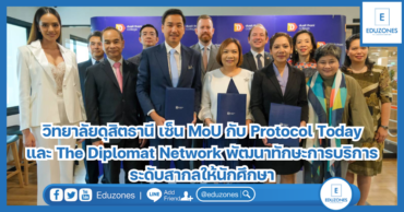 EZ Webmaster March 22, 2024 วิทยาลัยดุสิตธานี เซ็น MoU กับ Protocol Today และ The Diplomat Network พัฒนาทักษะการบริการระดับสากลให้นักศึกษา EZ Webmaster March 22, 2024 เมื่อวันที่ 22 มีนาคม 2567 วิทยาลัยดุสิตธานี สถาบันอุดมศึกษาด้านธุรกิจบริการชั้นแนวหน้าในเครือโรงแรมดุสิตธานี ซึ่งมุ่งมั่นในการปลูกฝังความเป็นสากล (internationalization) ให้แก่นักศึกษา นำโดย ดร. ประวีณา คาไซ รองอธิการบดีฝ่ายกิจการนักศึกษา ได้ลงนามความร่วมมือกับ 2 องค์กร ได้แก่ Protocol Today ซึ่งเป็นองค์กรที่เชี่ยวชาญด้านพิธีการระหว่างประเทศ และการสร้างความร่วมมือทางธุรกิจระหว่างประเทศ และ The Diplomat Network ผู้เชี่ยวชาญในการดำเนินกิจกรรมระดับนานาชาติ การทูต และดูแลแขกระดับวีไอพีอย่างพิถีพิถัน ด้วยทักษะการบริการระดับสากล โดยมีวัตถุประสงค์เพื่อให้ทั้งสามองค์กรได้แลกเปลี่ยนเรียนรู้ทักษะและประสบการณ์อันเป็นประโยชน์ต่อกัน ทั้งยังเปิดโอกาสให้นักศึกษาของวิทยาลัยดุสิตธานีได้ฝึกอบรมทักษะด้านอารมณ์และการสื่อสาร… Continue Reading