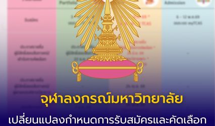 จุฬาลงกรณ์มหาวิทยาลัยเปลี่ยนแปลงกำหนดการรับสมัครและคัดเลือกนักเรียนเข้าศึกษาในจุฬาลงกรณ์มหาวิทยาลัย