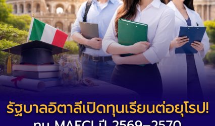 Blogทุนดีดีนักเรียน อิตาลีเปิดคลังทุนรัฐบาล MAECI ปี 2569–2570 ชวนนักศึกษาไทยเรียนต่อยุโรป รับเงินสนับสนุนกว่า 4 แสนบาทต่อปี EZ Webmaster March 16, 2026 อิตาลีเปิดคลังทุนรัฐบาล MAECI ปี 2569–2570 ชวนนักศึกษาไทยเรียนต่อยุโรป รับเงินสนับสนุนกว่า 4 แสนบาทต่อปี รัฐบาลอิตาลี โดย กระทรวงการต่างประเทศและความร่วมมือระหว่างประเทศอิตาลี (MAECI) ร่วมกับสถานเอกอัครราชทูตอิตาลีประจำประเทศไทย ประกาศเปิดรับสมัคร ทุนการศึกษารัฐบาลอิตาลี ประจำปีการศึกษา…