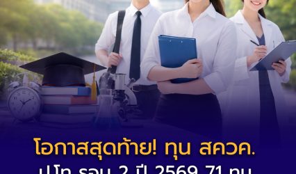 ครู-อาจารย์Blogทุนดีดี โอกาสสุดท้าย! ทุน สควค. ป.โท รอบ 2 ปี 2569 ว่าง 71 ทุน เรียนฟรี มีเงินเดือน จบแล้วบรรจุครูทันที EZ Webmaster March 14, 2026 โอกาสสุดท้าย! ทุน สควค. ป.โท รอบ 2 ปี 2569 ว่าง 71 ทุน เรียนฟรี มีเงินเดือน จบแล้วบรรจุครูทันที สถาบันส่งเสริมการสอนวิทยาศาสตร์และเทคโนโลยี (สสวท.)…