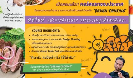 กิจกรรม ครั้งแรกในไทย !!! 29 ก.พ.นี้ DPU X เปิดอบรมหลักสูตร “Design Cooking” EZ Webmaster February 3, 2020 ครั้งแรกในไทย !!! 29 ก.พ.นี้ DPU X เปิดอบรมหลักสูตร “Design Cooking” เอาใจคนรักการทำอาหาร ด้วยการสอนออกแบบเมนูอาหารให้ตอบโจทย์เฉพาะคนพิเศษของคุณ หลักสูตรที่ผสมผสานศาสตร์แห่งการทำอาหารและ หลักคิดของ Design Thinking เข้าด้วยกัน โดยวิทยากรผู้เชี่ยวชาญ เชฟขุน-ขุนกลาง ขุขันธิน เชฟกูรูสายออร์แกนิค ที่เชื่อว่า อาหารดีๆ เปลี่ยนแปลงโลกได้ และ…
