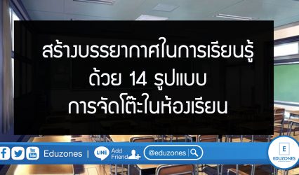 ครู-อาจารย์ สร้างบรรยากาศในการเรียนรู้ ด้วย 14 รูปแบบการจัดโต๊ะในห้องเรียน EZ Webmaster December 25, 2019 ภายในห้องสี่เหลี่ยมที่ทั้งเด็กและครูต้องใช้เวลาร่วมกันทุกวัน วันละหลายๆ ชั่วโมงก็อาจะทำให้เด็กๆ เบื่อและไม่พร้อมที่จะเรียนรู้ วันนี้เราจึงมี 14 รูปแบบการจัดโต๊ะในห้องเรียนเพื่อเพิ่มบรรยากาศในการเรียนรู้มาฝากกันค่ะ 1 ห้องเรียนแบบบรรยาย : เน้นเรียนแบบทฤษฎี เหมาะกับการบรรยายและการสอบ …