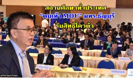 ครู-อาจารย์ สถานศึกษาทั่วประเทศ “ตบเท้า MOU” มทร.ธัญบุรี รับสิทธิ์โควต้า tui sakrapee November 7, 2019 นายวิรัช โหตระไวศยะ รักษาราชการแทนอธิการบดีมหาวิทยาลัยเทคโนโลยีราชมงคล (มทร.) ธัญบุรี ตัวแทน มทร.ธัญบุรี ลงนามความร่วมมือทางวิชาการ ผู้บริหารสถานศึกษากว่า 60 แห่ง เปิดโอกาสให้นักเรียนเข้าศึกษาต่อในมหาวิทยาลัย ณ ห้องประชุมสงค์ธนาพิทักษ์ นายวิรัช โหตระไวศยะ…