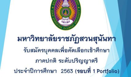 นักเรียน สวนสุนันทา เปิดระบบรับสมัครรอบที่ 1 Portfolio เริ่ม 2 ธ.ค.นี้ tui sakrapee October 31, 2019 กองบริการการศึกษา มหาวิทยาลัยราชภัฏสวนสุนันทา ประกาศสาขาวิชาที่เปิดรับสมัคร รอบที่ 1 Portfolio ประจำปีการศึกษา 2563 ผู้สมัครที่สนใจสามารถดูรายละเอียดคุณสมบัติได้ที่ http://admission.ssru.ac.th/ หรือสอบถามรายละเอียดได้ที่ 021601261, 021601380 # มหาวิทยาลัยราชภัฏสวนสุนันทา เปิดระบบรับสมัครตั้งแต่วันที่ 2…