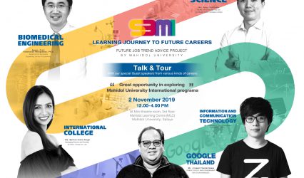 กิจกรรม งานแนะแนวการศึกษารูปแบบใหม่ของมหิดล ครั้งแรกของการผนึกกำลังกันจาก 3 คณะ ได้แก่ คณะวิทยาศาสตร์, คณะวิศวกรรมศาสตร์, คณะเทคโนโลยีสารสนเทศและการสื่อสาร และวิทยาลัยนานาชาติมหิดล EZ Webmaster November 1, 2019 พบกับงานแนะแนวการศึกษารูปแบบใหม่ของมหิดล ครั้งแรกของการผนึกกำลังกันจาก 3 คณะ ได้แก่ คณะวิทยาศาสตร์ (Science) , คณะวิศวกรรมศาสตร์ (Engineering), คณะเทคโนโลยีสารสนเทศและการสื่อสาร (ICT) และวิทยาลัยนานาชาติมหิดล (MUIC) มาแล้วจะได้อะไร? ได้ข้อมูลหลักสูตรนานาชาติ…