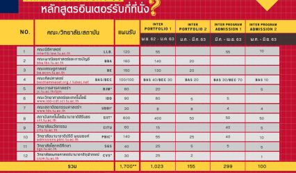 สัมผัสลมหนาวที่ “เกิ้งแคมป์” แลนด์มาร์กใหม่ มมส ผนึกพลังนิสิต 3 คณะ พลิกโฉมงานวิจัยสู่แหล่งท่องเที่ยวเชิงนิเวศ EZ WebmasterDecember 15, 2025 สัมผัสลมหนาวที่ “เกิ้งแคมป์” แลนด์มาร์กใหม่ มมส ผนึกพลังนิสิต 3 คณะ พลิกโฉมงานวิจัยสู่แหล่งท่องเที่ยวเชิงนิเวศ ทีมนักศึกษาคณะบัญชี ม.รังสิต ได้รับรางวัลชนะเลิศ พร้อมโล่และเงินรางวัล 15,000 บาท จากการแข่งขันโครงการ PEAK Digital Accounting Championship… นักศึกษาบัญชี ม.รังสิต คว้ารางวัลชนะเลิศ “PEAK Digital Accounting Championship 2025” EZ WebmasterDecember 15, 2025 นักศึกษาบัญชี ม.รังสิต คว้ารางวัลชนะเลิศ “PEAK Digital Accounting Championship 2025” ทีมนักศึกษาคณะบัญชี ม.รังสิต ได้รับรางวัลชนะเลิศ พร้อมโล่และเงินรางวัล 15,000 บาท จากการแข่งขันโครงการ PEAK Digital Accounting… รวมให้เเล้ว เเต่ละมหาวิทยาลัยโดดเด่นสายไรอะไรบ้าง EZ WebmasterDecember 15, 2025 รวมให้เเล้ว เเต่ละมหาวิทยาลัยโดดเด่นสายไรอะไรบ้าง ในยุคแห่งการแข่งขันนี้ การเลือกมหาวิทยาลัยไม่ใช่เพียงแค่การเลือกสถาบันที่มีชื่อเสียง แต่คือการค้นหาสถาบันที่สามารถบ่มเพาะศักยภาพและตรงกับความถนัดในสายงานที่นักศึกษาใฝ่ฝันอย่างแท้จริง มหาวิทยาลัยแต่ละแห่งต่างมีรากฐานทางวิชาการและจุดเน้นที่แตกต่างกันไป ซึ่งเป็นกุญแจสำคัญที่กำหนดทิศทางอาชีพในอนาคต คุณเคยสงสัยหรือไม่ว่า มหาวิทยาลัยชั้นนำของไทยนั้น ” โดดเด่น ” ในสาขาใดเป็นพิเศษ? 1. จุฬาลงกรณ์มหาวิทยาลัย สายที่โดดเด่น : วิทยาศาสตร์สุขภาพ… รวมมหาวิทยาลัยปั้นนักศึกษาแพทย์มากที่สุด ในปี 2567 EZ WebmasterDecember 15, 2025 รวมมหาวิทยาลัยปั้นนักศึกษาแพทย์มากที่สุด ในปี 2567 ในปีการศึกษา พ.ศ. 2567 มีสถาบันที่จัดการศึกษาและได้รับใบอนุญาตให้ผลิตบัณฑิตแพทย์รวม 27 แห่ง โดยมีจำนวนผลผลิตรวมประมาณ 3,000 คน ต่อปี ซึ่งมหาวิทยาลัยที่เป็นแหล่งผลิตแพทย์รายใหญ่ที่สุดคือ จุฬาลงกรณ์มหาวิทยาลัย (308 คน)… ทุนดีดี เปิดรับสมัครแล้ว! ทุนเรียนพยาบาล “ปลูกต้นกล้าพยาบาล 3 สถาบัน” ปีการศึกษา 2569 (รอบที่ 2) EZ WebmasterDecember 14, 2025 🩺✨ เปิดรับสมัครแล้ว! ทุนเรียนพยาบาล “ปลูกต้นกล้าพยาบาล 3 สถาบัน” ปีการศึกษา 2569 (รอบที่ 2) โอกาสสำคัญสำหรับน้อง ๆ ที่มีความฝันอยากเป็นพยาบาล แต่ขาดแคลนทุนทรัพย์มูลนิธิป่อเต็กตึ๊ง ร่วมกับ โรงพยาบาลหัวเฉียว และ มหาวิทยาลัยหัวเฉียวเฉลิมพระเกียรติเปิดรับสมัครทุนการศึกษาในโครงการ… เปิดรับสมัครแล้ว! ทุนการศึกษา APSCO ประจำปี 2569 EZ WebmasterDecember 14, 2025 🚀 เปิดรับสมัครแล้ว! ทุนการศึกษา APSCO ประจำปี 2569 ศึกษาต่อระดับปริญญาโท–ปริญญาเอก ในต่างประเทศ ข่าวดีสำหรับผู้ที่สนใจศึกษาต่อด้านอวกาศ วิทยาศาสตร์ และเทคโนโลยีขั้นสูงกรมกิจการอวกาศแห่งชาติ ภายใต้ สำนักงานคณะกรรมการดิจิทัลเพื่อเศรษฐ