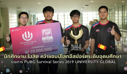 กิจกรรมนักศึกษา นักศึกษาม.รังสิต คว้าแชมป์โลกอีสปอร์ตระดับอุดมศึกษา รายการ PUBG Survival Series 2019 UNIVERSITY GLOBAL EZ Webmaster September 13, 2019 ทีมนักศึกษามหาวิทยาลัยรังสิต คว้าแชมป์โลกการแข่งขันอีสปอร์ตระดับอุดมศึกษา รายการ PUBG Survival Series 2019 UNIVERSITY GLOBAL ที่ประเทศเกาหลีใต้ พร้อมรับเงินรางวัล 20 ล้านวอน (ประมาณ 500,000 บาท)…
