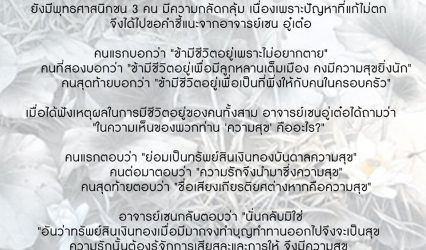ทุนดีดี ความสุขอยู่หนใด?ทรัพย์สิน ความรัก หรือชื่อเสียงเกียรติยศ (มีทุนเรียนต่อประเทศจีนมอบให้) tui sakrapee September 4, 2019 “ความสุข” สั้น ๆ ง่าย ๆ แต่หา “ความหมาย” ได้ยากยิ่ง เพราะแต่ละคนตีความแตกต่างกันออกไป บางคนนิยมชมชอบสะสมทรัพย์ให้มากเข้าไว้ มั่นใจแน่แล้วว่านั่นคือความสุขสุดยอดของตนเอง บางคนยืนยันว่าเกิดมาเพื่อเสียสละให้คนอื่น ยืนยันในความพอเพียงขอแค่มีความรักจากผู้คนเท่านั้นก็พอ หรืออีกมากมายที่ต้องการเกียรติยศชื่อเสียง เพียงเพราะคิดว่าถ้ามีสิ่งนี้แล้วผู้คนจะยอมรับ แต่ในมุมมองของ “อาจารย์เซน” ท่านจะวิเคราะห์ไว้ว่าอย่างไร ไปติดตามกันดู… วันนี้ยังคงมีแง่คิดดี…