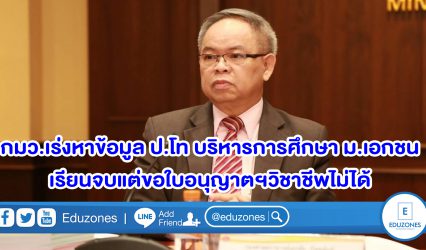ข่าวเด่น กมว.เร่งหาข้อมูล ป.โท บริหารการศึกษา ม.เอกชน เรียนจบแต่ขอใบอนุญาตฯวิชาชีพไม่ได้ EZ Webmaster September 9, 2019 วันนี้(9 ก.ย.) รศ.ดร.เอกชัย กี่สุขพันธ์ ประธานคณะกรรการมาตรฐานวิชาการ (กมว.) คุรุสภา เปิดเผยว่า เมื่อเร็วๆนี้ ที่ประชุม กมว.ได้ติดตามกรณีการรับรองปริญญาทางการศึกษาของมหาวิทยาลัยเอกชนแห่งหนึ่งในเขตปริมณฑล หลังมีผู้ร้องเรียนว่าเรียนจบหลักสูตรศึกษาศาสตรมหาบัณฑิต สาขาวิชาการบริหารการศึกษา แต่ไม่สามารถขอรับใบอนุญาตประกอบวิชาชีพผู้บริหารการศึกษาได้ ซึ่งจากการตรวจสอบเบื้องต้นพบว่า มหาวิทยาลัยได้รับอนุมัติให้เปิดสอนหลักสูตรดังกล่าวในปีการศึกษา…