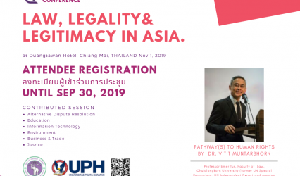 กิจกรรมนักเรียน คณะนิติศาสตร์เชิญชวนผู้ที่สนใจเข้าร่วมงานประชุมวิชาการสาขานิติศาสตร์ระดับนานาชาติ หัวข้อ Law, Legality & Legitimacy in Asia EZ Webmaster September 3, 2019 คณะนิติศาสตร์ มหาวิทยาลัยเชียงใหม่ เชิญชวนผู้ที่สนใจลงทะเบียนเข้าร่วมงานประชุมวิชาการสาขานิติศาสตร์ระดับนานาชาติ ครั้งที่ 1 (The 1st Law CMU International Conference : Law, Legality & Legitimacy…