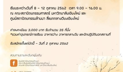 กิจกรรมนักศึกษา คณะจิตรกรรม ประติมากรรมและภาพพิมพ์ มหาวิทยาลัยศิลปากร EZ Webmaster September 4, 2019 (For English please scroll down.) คณะจิตรกรรม ประติมากรรมและภาพพิมพ์ มหาวิทยาลัยศิลปากร มีความยินดีขอเรียนเชิญท่านเข้าร่วมเป็นเกียรติในพิธีเปิดนิทรรศการ การแสดงศิลปกรรมของอาจารย์คณะจิตรกรรม ประติมากรรมและภาพพิมพ์ มหาวิทยาลัยศิลปากร ครั้งที่ 36 มนุษย์ /…