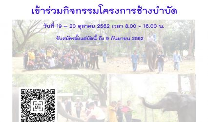 กิจกรรมนักเรียน รับสมัครเด็กเข้าร่วมโครงการช้างบำบัด 19-20 ต.ค 62 EZ Webmaster September 3, 2019 รับสมัครเด็กเข้าร่วมโครงการช้างบำบัด 19-20 ต.ค 62 โครงการช้างบำบัด ภาควิชากิจกรรมบำบัด คณะเทคนิคการแพทย์ มหาวิทยาลัยเชียงใหม่ รับสมัครเด็กที่มีความต้องการจำเป็นพิเศษ อายุ 8 -19 ปี เข้าร่วมกิจกรรมโครงการช้างบำบัดในระหว่างวันที่ 19 –…