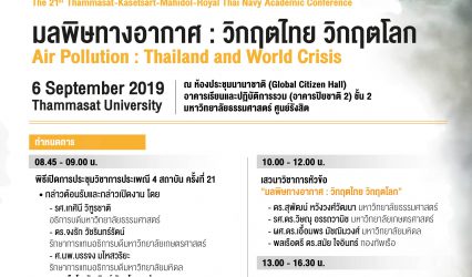 กิจกรรม มธ.จัดประชุมวิชาการ 4 สถาบัน บูรณาการแก้ปัญหามลพิษทางอากาศ EZ Webmaster September 4, 2019 มหาวิทยาลัยธรรมศาสตร์ ขอเชิญสื่อมวลชนและผู้สนใจเข้าร่วมงาน ‘การประชุมวิชาการประเพณี 4 สถาบัน’ ครั้งที่ 21 ในวันศุกร์ที่ 6 กันยายน 2562 เรื่อง มลพิษทางอากาศ : วิกฤตไทย วิกฤตโลก…