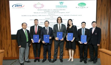 นักศึกษา MOU ประชุมสุดยอดกัญชาทางการแพทย์ระดับโลก EZ Webmaster August 29, 2019 ดร.อภิรมณ อุไรรัตน์ รองอธิการบดีฝ่ายทรัพย์สินทางปัญญา Start Up และการลงทุน และ ผศ.ดร.ภก.ธนภัทร ทรงศักดิ์ คณบดีวิทยาลัยเภสัชศาสตร์ มหาวิทยาลัยรรังสิต ร่วมลงนามบันทึกข้อตกลงความร่วมมือ “ประชุมสุดยอดกัญชาทางการแพทย์ระดับโลก กรุงเทพ 2020” ระหว่าง…