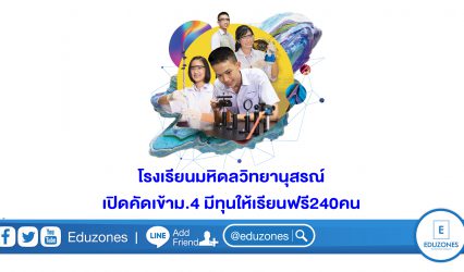 นักเรียน โรงเรียนมหิดลวิทยานุสรณ์เปิดคัดเข้าม.4 มีทุนให้เรียนฟรี240คน EZ Webmaster August 29, 2019 โรงเรียนมหิดลวิทยานุสรณ์ เป็นโรงเรียนวิทยาศาสตร์ของรัฐ มีภารกิจในการพัฒนาต้นแบบและนําร่อง เกี่ยวกับการสรรหาและจัดการศึกษาสําหรับผู้มีความสามารถพิเศษด้านคณิตศาสตร์และวิทยาศาสตร์ ระดับมัธยมศึกษา ตอนปลาย เพื่อพัฒนาส่งเสริมให้นักเรียนเหล่านี้มีจิตวิญญาณ และมีความมุ่งมั่นที่จะประกอบอาชีพ เป็นนักวิจัย นักประดิษฐ์คิดค้นด้านคณิตศาสตร์ วิทยาศาสตร์และเทคโนโลยี ที่มีคุณภาพเทียบเคียงกับนักวิจัย นักประดิษฐ์คิดค้น ชั้นนําของนานาประเทศ มีความเป็นไทย มีความมุ่งมั่นที่จะช่วยพัฒนาประเทศชาติ ตอบแทนแผ่นดินเกิดตามศักยภาพ ของตนเอง และมีเจตคติที่ดีต่อเพื่อนร่วมโลกและธรรมชาติ โรงเรียนมหิดลวิทยานุสรณ์มีความประสงค์จะรับสมัครนักเรียนที่กําลังเรียนชั้นมัธยมศึกษาปีที่ 3 หรือเทียบเท่า ปีการศึกษา 2562 เพื่อคัดเลือกเข้าเป็นนักเรียนชั้นมัธยมศึกษาปีที่ 4 ปีการศึกษา 2563 โรงเรียนมหิดลวิทยานุสรณ์ จํานวน 240 คน คุณสมบัติของผู้สมัคร – กําลังศึกษาอยู่ในชั้นมัธยมศึกษาปีที่ 3 หรือเทียบเท่า ปีการศึกษา 2562 1.2 มีผลการเรียน ดังนี้ -ระดับคะแนนเฉลี่ยสะสมรวมทุกรายวิชา ในชั้นมัธยมศึกษาปีที่ 1 และ 2 ไม่ต่ํากว่า 3.00 -ระดับคะแนนเฉลี่ยสะสมกลุ่มสาระการเรียนรู้วิทยาศาสตร์ ในชั้นมัธยมศึกษาปีที่ 1 และ 2 ไม่ต่ํากว่า 3.00 -ระดับคะแนนเฉลี่ยสะสมกลุ่มสาระการเรียนรู้คณิตศาสตร์ ในชั้นมัธยมศึกษาปีที่ 1 และ 2 ไม่ต่ํากว่า 3.00 -มีสัญชาติไทยและมีเลขประจําตัวประชาชน -ไม่เป็นโรคที่เป็นอุปสรรคต่อการศึกษาและการพักในห้องพักของโรงเรียน – มีความขยันหมั่นเพียร มีความประพฤติดีและมีบุคลิกภาพเหมาะสม -มีความตั้งใจเข้าเรียนในโรงเรียนมหิดลวิทยานุสรณ์ และสนใจศึกษาต่อระดับอุดมศึกษาด้านคณิตศาสตร์ วิทยาศาสตร์และเทคโนโลยี โดยได้รับการสนับสนุนจากผู้ปกครอง -สามารถพักอยู่ในโรงเรียนในลักษณะโรงเรียนประจําได้และยินดีปฏิบัติตามระเบียบของโรงเรียนในปัจจุบัน หรือที่จะได้มีการกําหนดในอนาคต ระยะเวลาการสมัคร เปิดรับสมัครตั้งแต่วันที่ 1 – 31…