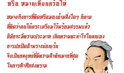 กิจกรรมนักศึกษา “36กลุยุทธ์ซุนวู”การใช้สติปัญญาเพื่อเอาชนะอุปสรรค(1) tui sakrapee July 15, 2019 “รู้เขารู้เรารบร้อยครั้งชนะร้อยครั้ง” คำกล่าวนี้ ซุนวู เป็นผู้เขียน อันเป็นตำราพิชัยสงคราม ที่ถือว่าเป็นตำรายุทธศาสตร์ทางทหารอันมีอิทธิพลมากของจีน ปัจจุบันยุทธศาสตร์ในตำราของซุนวู ได้ถูกนำมาประยุกต์ใช้อย่างกว้างขวาง ทั้งในแวดวงธุรกิจและแวดวงการเมือง “ซุนวู” เป็นชาวเล่ออาน อยู่ในแคว้นฉี ในสมัยปลายของยุคซุนชิว เป็นยุคเดี่ยวกับขงจื๊อ (ก่อนคริสตศักราช ประมาณ…