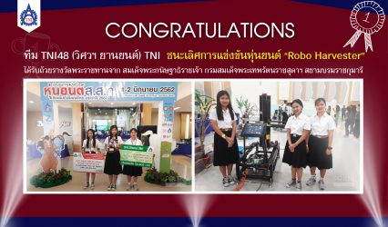นักศึกษา นศ. วิศวฯ ยานยนต์ TNI ชนะเลิศ การแข่งขันหุ่นยนต์ Robo Harvester สำหรับการเก็บมะม่วง ในงานแข่งขันหุ่นยนต์ ส.ส.ท. PLC Competition ครั้งที่ 14 EZ Webmaster June 6, 2019 นศ. วิศวฯ ยานยนต์ TNI ชนะเลิศการแข่งขันหุ่นยนต์ “Robo Harvester” เป็นหุ่นยนต์สำหรับการ “เก็บมะม่วง” ได้รับถ้วยรางวัลพระราชทานจาก สมเด็จพระกนิษฐาธิราชเจ้า กรมสมเด็จพระเทพรัตนราชสุดาฯ สยามบรมราชกุมารี นศ.TNI เข้าร่วมการแข่งขันหุ่นยนต์ ส.ส.ท. PLC Competition ครั้งที่ 14 “Robo Harvester” ระหว่างวันที่…