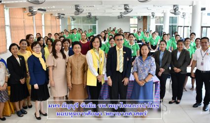 กิจกรรม มทร.ธัญบุรีจับมือรพ.พญาไทและเปาโลฯ มอบทุนการศึกษา ‘พยาบาลศาสตร์’ tui sakrapee June 6, 2019 รศ.สุนทรี ภานุทัต คณบดีคณะพยาบาลศาสตร์ มหาวิทยาลัยเทคโนโลยีราชมงคลธัญบุรี (มทร.ธัญบุรี) เปิดเผยว่า คณะพยาบาลศาสตร์ได้ลงนามบันทึกข้อตกลงความร่วมมือในการจัดตั้งและบริหารจัดการคณะพยาบาลศาสตร์ โดยคุณอัฐ ทองแตง ประธานเจ้าหน้าที่บริหารเครือโรงพยาบาลพญาไท เพื่อสนับสนุนการจัดการศึกษาทางวิชาชีพพยาบาล ให้การสนับสนุนด้านอุปกรณ์ทางการพยาบาล และร่วมมือในการจัดหาแหล่งฝึกภาคปฏิบัติทางการพยาบาลที่เหมาะสม นอกจากนี้ ยังได้จัดสรรทุนการศึกษาให้แก่นักศึกษาคณะพยาบาลศาสตร์ ตั้งแต่ชั้นปีที่ 2 เป็นต้นไป ปีละ 1…