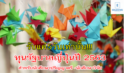 ทุนดีดี รับแค่5วันเท่านั้น!ทุนรัฐบาลญี่ปุ่นปี 2563 สำหรับนักศึกษาปริญญาตรี -นักศึกษาวิจัย tui sakrapee May 29, 2019 ประกาศรับสมัครทุนการศึกษาของรัฐบาลญี่ปุ่นปี 2563 สำหรับนักศึกษาปริญญาตรี -นักศึกษาวิจัย 1. ประเภททุนนักศึกษาวิจัย (Research Students) • Application Guidelines • Annex (กำหนดการและข้อกำหนดของประเทศไทย) • Application Form • Field of Study…