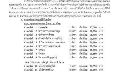 ครู-อาจารย์ มจพ. รับสมัครพนักงานมหาวิทยาลัย EZ Webmaster April 30, 2019 มจพ. รับสมัครพนักงานมหาวิทยาลัย ประกาศ ก.บ.ม. เรื่อง รับสมัครสอบแข่งขันเพื่อบรรจุเป็นพนักงานมหาวิทยาลัย ครั้งที่ 1/2562 มจพ. กรุงเทพ 13 อัตรา มจพ.วิทยาเขตปราจีนบุรี 9 มจพ.ระยอง…