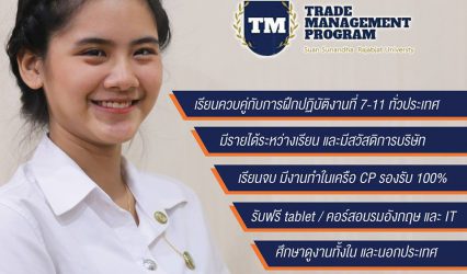 ทุนดีดี ให้ทุนตลอดหลักสูตร! สวนสุนันทา จับมือ CP ALL ผุดหลักสูตรการจัดการการค้า มีผลการเรียน 2.00 ขึ้นไปสมัครได้เลย tui sakrapee April 29, 2019 วิทยาลัยนวัตกรรมและการจัดการ มหาวิทยาลัยราชภัฏสวนสุนันทา เปิดรับสมัครนักศึกษาใหม่ภาคปกติ ระดับปริญญาตรี ภาคปกติ ในหลักสูตรบริหารธุรกิจบัณฑิต สาขาวิชาการจัดการการค้า หลักสูตรนี้เป็นโครงการความร่วมมือทางวิชาการระหว่าง มหาวิทยาลัยราชภัฏสวนสุนันทา กับ บริษัท ซีพี ออลล์ จำกัด (มหาชน) เป็นการขยายโอกาสทางการศึกษา…