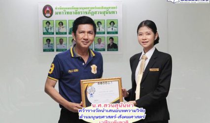 นักศึกษา น.ศ.สวนสุนันทา คว้ารางวัลนำเสนอบทความวิจัยด้านมนุษยศาสตร์-สังคมศาสตร์ เวทีระดับชาติ tui sakrapee April 23, 2019 นางสาวกัลยาณี ถนัดค้า นักศึกษาชั้นปีที่ 4 สาขาวิชาภาษาอังกฤษธุรกิจ คณะมนุษยศาสตร์และสังคมศาสตร์ มหาวิทยาลัยราชภัฏสวนสุนันทา รางวัลบทความดีเด่นด้านมนุษยศาสตร์ หัวข้อ “การเล่นเกมออนไลน์คอมพิวเตอร์กับการพัฒนาทักษะภาษาอังกฤษด้านคำศัพท์ (Developing English vocabulary through playing online computer…