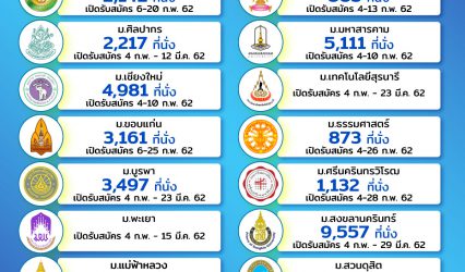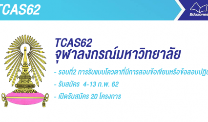 นักเรียน รายละเอียด TCAS รอบที่ 2 (การรับแบบโควตา) จุฬาลงกรณ์มหาวิทยาลัย ปีการศึกษา 2562 handy hotspurs February 6, 2019 1. ประกาศจุฬาลงกรณ์มหาวิทยาลัย เรื่อง การรับสมัครคัดเลือกนักเรียนเข้าศึกษาในหลักสูตรสถาปัตยกรรมศาสตรบัณฑิต สาขาวิชาสถาปัตยกรรมไทย คณะสถาปัตยกรรมศาสตร์ ปีการศึกษา 2562 –…
