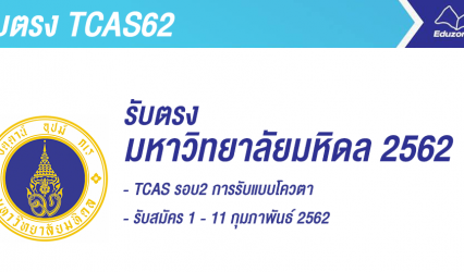 นักเรียน รายละเอียดการรับ TCAS รอบ2 การรับแบบโควตา ม.มหิดล 2562 handy hotspurs February 6, 2019 รับสมัคร 1 – 11 กุมภาพันธ์ 2562 เปิดรับทั้งหมด 646 คน ระเบียบการรับสมัคร เว็บไซต์รับสมัคร คลิก ประกาศรับ คลิก ———————————————————————————————————-