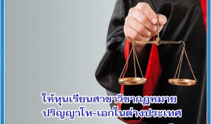 ทุนดีดี ให้ทุนเรียนสาขาวิชากฎหมายป.โท-เอกในต่างประเทศ EZ Webmaster January 16, 2019 ให้ทุนเรียนสาขาวิชากฎหมายป.โท-เอกในต่างประเทศ สํานักงานศาลยุติธรรม ประกาศให้ทุนการศึกษาเพื่อศึกษาต่อระดับปริญญาโทและปริญญาเอกในต่างประเทศ โดยเป็นทุนสําหรับบุคคลทั่วไป ๑. จํานวน ๓ ทุน ๑.๑ ทุนศึกษาในสาขาวิชากฎหมาย จํานวน ๓ ทุน ในวิชาใดวิชาหนึ่ง ดังต่อไปนี้ –…