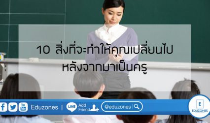 ครู-อาจารย์ 10 สิ่งที่จะทำให้คุณเปลี่ยนไปหลังจากมาเป็นครู EZ Webmaster January 16, 2019 10 สิ่งที่จะทำให้คุณเปลี่ยนไปหลังจากมาเป็นครู 1.คุณจะรู้สึกหวังดีและรักเด็ก (แม้เมื่อก่อนจะไม่เคยรัก) เรียกได้ว่าเมื่อก่อนไม่เคยจะชอบเด็กๆ แต่พอได้เข้ามาสัมผัสจะเห็นอะไรหลายๆอย่างจากเด็กๆ ทั้งความใสซื่อ น่ารักของพวกเขาและความไม่รู้ของพวกเขา จะทำให้คนเป็นครูอย่างเราๆท่านๆรู้สึกหลงรักในตัวพวกเขาขึ้นมาทันที บางครั้งเผลอเรียกไปว่า “ลูกๆ” 2.คุณจะกลายเป็นคนที่ขี้บ่น (แม้เมื่อก่อนคุณจะเป็นคนเงียบๆ) เมื่อก่อนเรียกได้ว่าเป็นคนที่ไม่ชอบคนขี้บ่นแต่พอเป็นครูนานเข้า มารู้สึกตัวอีกที เอ๊ะ…นี่เรากลายเป็นคนขี้บ่น…