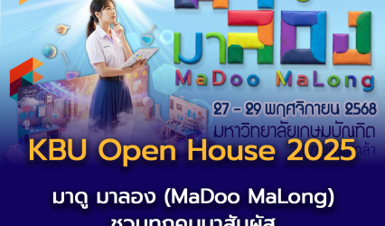Blogกิจกรรมนักเรียนมหาวิทยาลัย เกษมบัณฑิตเปิดบ้าน ….ชวนน้องๆ มาเปิดใจ มาดู มาลอง EZ Webmaster November 3, 2025 เกษมบัณฑิตเปิดบ้าน ….ชวนน้องๆ มาเปิดใจ มาดู มาลอง KBU Open House 2025 — มาดู มาลอง (MaDoo MaLong) ชวนทุกคนมาสัมผัสประสบการณ์จริงแบบจัดเต็ม องเป็นเชฟ…