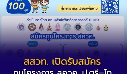 Blogครู-อาจารย์นักเรียน สสวท. เปิดรับสมัคร ทุนโครงการ สควค. ระดับปริญญาตรี–โท ปีการศึกษา 2569 จำนวน 100 ทุน EZ Webmaster November 3, 2025 📣 โอกาสดีสำหรับ “ว่าที่ครู SMT แห่งอนาคต”! สถาบันส่งเสริมการสอนวิทยาศาสตร์และเทคโนโลยี (สสวท.)เปิดรับสมัครนักเรียนชั้น มัธยมศึกษาปีที่ 6 ปีการศึกษา 2568เข้าร่วมคัดเลือก ทุนโครงการ สควค. (ทุนครู SMT)ประเภทที่ 1…