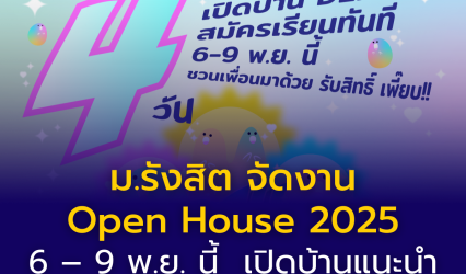 Blogกิจกรรมครู-อาจารย์นักศึกษานักเรียนมหาวิทยาลัย ม.รังสิต จัดงาน Open House 2025 6 – 9 พ.ย. นี้ เปิดบ้านแนะนำ 8 กลุ่มการศึกษา 143 หลักสูตร EZ Webmaster October 20, 2025 ม.รังสิต จัดงาน Open House 2025 6 – 9 พ.ย. นี้ เปิดบ้านแนะนำ 8 กลุ่มการศึกษา 143 หลักสูตร มหาวิทยาลัยรังสิต เปิดบ้านต้อนรับน้องๆ มัธยศึกษาตอนปลาย สายวิทย์ ศิลป์ ภาษา รวมถึงอาชีวศึกษาร่วมกิจกรรมงาน Open…