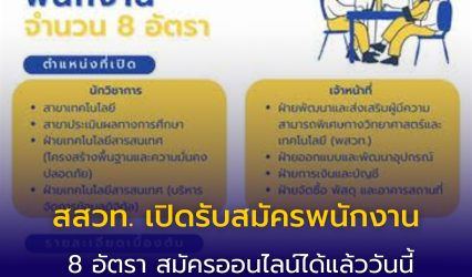 Blogกิจกรรมนักศึกษา สสวท. เปิดรับสมัครพนักงาน 8 อัตรา สมัครออนไลน์ได้แล้ววันนี้ ถึง 15 มกราคม 2569 EZ Webmaster December 8, 2025 สสวท. เปิดรับสมัครพนักงาน 8 อัตรา สมัครออนไลน์ได้แล้ววันนี้ ถึง 15 มกราคม 2569 สถาบันส่งเสริมการสอนวิทยาศาสตร์และเทคโนโลยี (สสวท.) ประกาศเปิดรับสมัครพนักงาน จำนวน 8 อัตรา ประกอบด้วย นักวิชาการ…