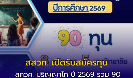 ทุนดีดีนักศึกษา สสวท. เปิดรับสมัครทุน สควค. ปริญญาโท ปี 2569 รวม 90 ทุน ปั้นครู SMT คุณภาพรุ่นใหม่ EZ Webmaster December 8, 2025 สสวท. เปิดรับสมัครทุน สควค. ปริญญาโท ปี 2569 รวม 90 ทุนปั้นครู SMT คุณภาพรุ่นใหม่ สถาบันส่งเสริมการสอนวิทยาศาสตร์และเทคโนโลยี (สสวท.) เปิดรับสมัครนิสิตนักศึกษาชั้นปีที่ 4 และผู้สำเร็จการศึกษา วท.บ. ที่ตั้งใจเป็น “ครู SMT คุณภาพ” เข้ารับการคัดเลือกทุนโครงการส่งเสริมการผลิตครูที่มีความสามารถพิเศษทางวิทยาศาสตร์และคณิตศาสตร์ (สควค.) ประเภทที่ 2 ระดับปริญญาโท…
