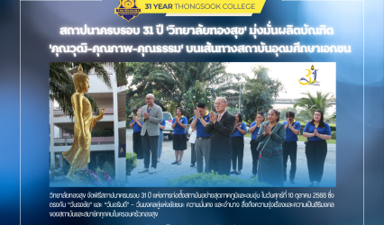 Blogครู-อาจารย์ สถาปนาครบรอบ 31 ปี ‘วิทยาลัยทองสุข’ มุ่งมั่นผลิตบัณฑิต ‘คุณวุฒิ-คุณภาพ-คุณธรรม’ บนเส้นทางสถาบันอุดมศึกษาเอกชน tui sakrapee October 10, 2025 10 ตุลาคม 2568 —วิทยาลัยทองสุข จัดพิธีสถาปนาครบรอบ 31 ปี แห่งการก่อตั้งสถาบันอย่างสุดภาคภูมิและอบอุ่น ในวันศุกร์ที่ 10 ตุลาคม 2568 ซึ่งตรงกับ “วันธงชัย” และ “วันอธิบดี”…