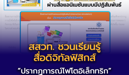 Blogครู-อาจารย์นักเรียนโปรแกรม สสวท. ชวนเรียนรู้สื่อดิจิทัลฟิสิกส์ “ปรากฏการณ์โฟโตอิเล็กทริก” ผ่านสื่อแอนิเมชันแบบมีปฏิสัมพันธ์ EZ Webmaster October 14, 2025 สสวท. ชวนเรียนรู้สื่อดิจิทัลฟิสิกส์ “ปรากฏการณ์โฟโตอิเล็กทริก” ผ่านสื่อแอนิเมชันแบบมีปฏิสัมพันธ์ สถาบันส่งเสริมการสอนวิทยาศาสตร์และเทคโนโลยี (สสวท.) เชิญชวนครู นักเรียน และผู้สนใจร่วมเปิดประสบการณ์การเรียนรู้ “ปรากฏการณ์โฟโตอิเล็กทริก” ผ่านสื่อแอนิเมชันแบบมีปฏิสัมพันธ์ (interactive simulation) บนเว็บไซต์คลังความรู้ SciMath สสวท. แอนิเมชันนี้ออกแบบมาเพื่อจำลองการทดลองจริง ครอบคลุมกิจกรรมการทดลอง 5 กิจกรรม ที่เปิดโอกาสให้ผู้เรียนปรับเปลี่ยนตัวแปรได้ด้วยตนเอง แล้วสังเกตผลลัพธ์ที่เกิดขึ้น พร้อมทั้งตอบคำถาม วิเคราะห์…
