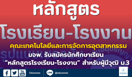 Blogนักศึกษานักเรียนมหาวิทยาลัย คณะเทคโนโลยีและการจัดการอุตสาหกรรม มจพ. รับสมัครนักศึกษาเรียน “หลักสูตรโรงเรียน-โรงงาน” สำหรับผู้มีวุฒิ ม.3 EZ Webmaster October 10, 2025 คณะเทคโนโลยีและการจัดการอุตสาหกรรม มจพ. รับสมัครนักศึกษาเรียน “หลักสูตรโรงเรียน-โรงงาน” สำหรับผู้มีวุฒิ ม.3 คณะเทคโนโลยีและการจัดการอุตสาหกรรม (FITM ) มหาวิทยาลัยเทคโนโลยีพระจอมเกล้าพระนครเหนือ วิทยาเขตปราจีนบุรี เปิดรับสมัครนักศึกษาในโครงการรับสมัครคัดเลือกเข้าศึกษา “หลักสูตรโรงเรียน-โรงงาน” สำหรับผู้มีวุฒิ…