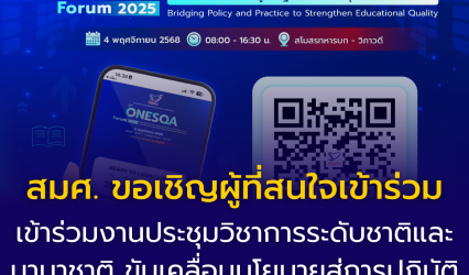 Blogกิจกรรมครู-อาจารย์นักศึกษานักเรียน สมศ. เชิญร่วมรับชม Live การประชุมวิชาการระดับชาติและนานาชาติ 2025 ONESQA Forum ครั้งที่ 2 “Bridging Policy and Practice to Strengthen Educational Quality” ขับเคลื่อนนโยบายสู่การปฏิบัติเพื่อยกระดับคุณภาพการศึกษา EZ Webmaster October 10, 2025 สมศ. เชิญร่วมรับชม Live การประชุมวิชาการระดับชาติและนานาชาติ 2025 ONESQA Forum ครั้งที่ 2 “Bridging Policy and Practice to Strengthen Educational…