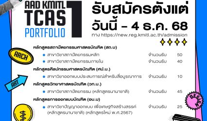 Blogนักเรียน AAD KMITL TCAS 1 (Portfolio) รอบแรกมาแล้ว EZ Webmaster September 28, 2025 🔥 AAD KMITL TCAS 1 (Portfolio) รอบแรกมาแล้ว! 🔥 คณะสถาปัตยกรรม ศิลปะและการออกแบบสถาบันเทคโนโลยีพระจอมเกล้าเจ้าคุณทหารลาดกระบัง 📌 เปิดรับสมัคร 5 สาขา ดังนี้✨ สถาปัตยกรรมหลัก…