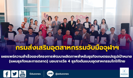 Blogมหาวิทยาลัย กรมส่งเสริมอุตสาหกรรมจับมือจุฬาฯ เผยแพร่ความสำเร็จของโครงการพัฒนาผลิตภาพ สำหรับธุรกิจเกษตรแปรรูปเป้าหมาย (แผนธุรกิจและการตลาด) มอบรางวัล 4 ธุรกิจต้นแบบอุตสาหกรรมโกโก้ไทย EZ Webmaster September 17, 2025 กรมส่งเสริมอุตสาหกรรมจับมือจุฬาฯ เผยแพร่ความสำเร็จของโครงการพัฒนาผลิตภาพ สำหรับธุรกิจเกษตรแปรรูปเป้าหมาย (แผนธุรกิจและการตลาด) มอบรางวัล 4 ธุรกิจต้นแบบอุตสาหกรรมโกโก้ไทย กรมส่งเสริมอุตสาหกรรม ร่วมมือกับจุฬาลงกรณ์มหาวิทยาลัย โดยศูนย์บริการวิชาการแห่งจุฬาฯ จัดพิธีปิดและเผยแพร่ความสำเร็จของกิจกรรมพัฒนาผลิตภาพสำหรับธุรกิจเกษตรแปรรูปเป้าหมาย (แผนธุรกิจและการตลาด) โครงการยกระดับสินค้าเกษตรสู่เกษตรอุตสาหกรรม ประจำปี 2568…